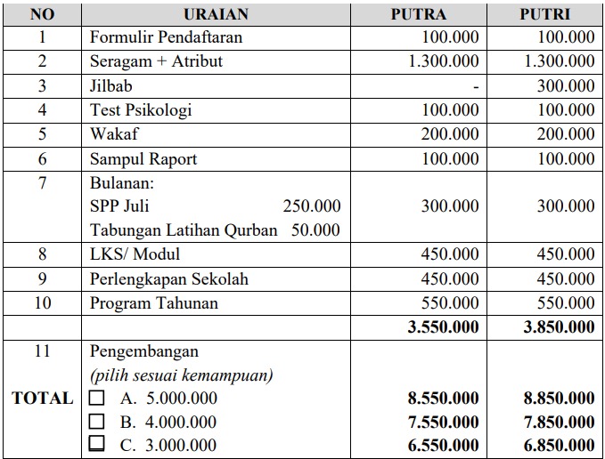 Formulir Pendaftaran, Kontak Informasi, Nomor Rekening